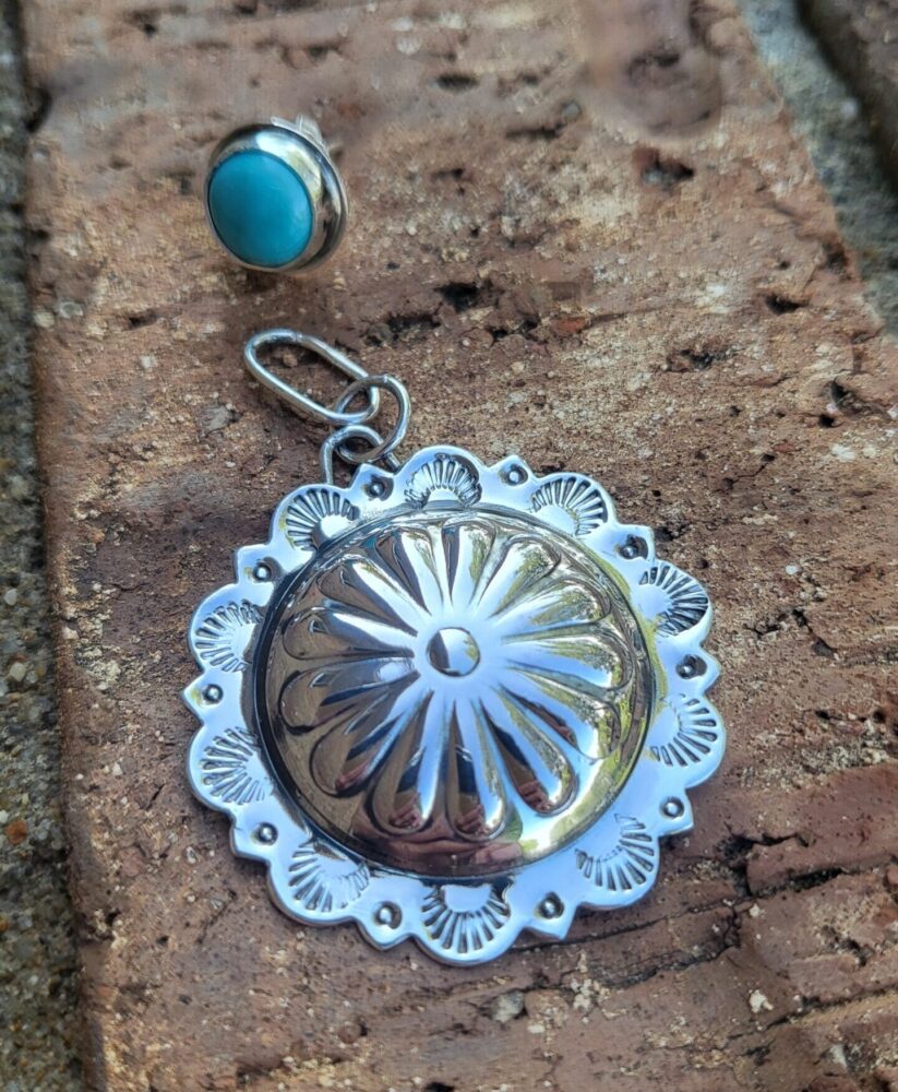 Kingman turquoise posts that can be worn with or without the conchos. 2 1/4 length when paired.