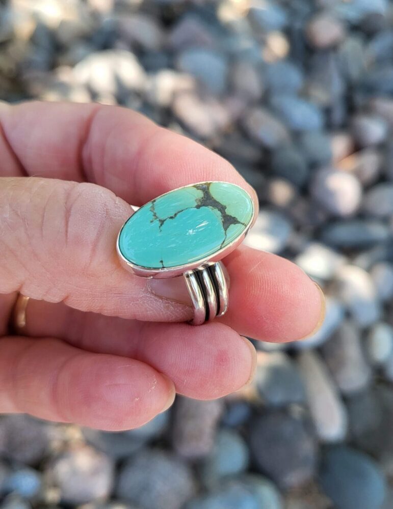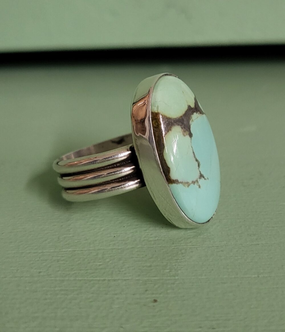 #8 turquoise with triple band. Beautiful shades of blue and green. Size 8.75